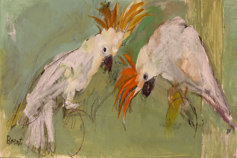 One Cock or Two. Oil on board. 20cm x 60cm.
