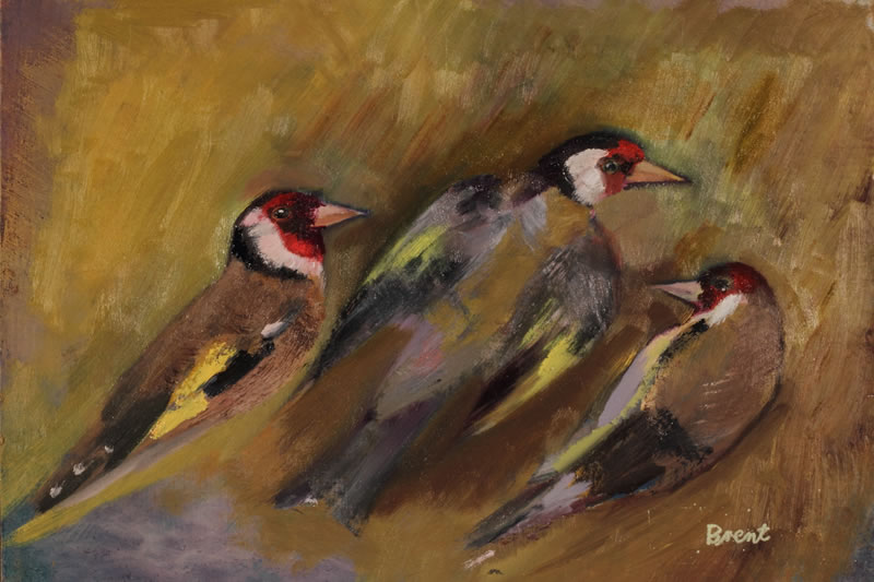 A Charm of Goldfinches. Oil on board. 16cm x 20cm.