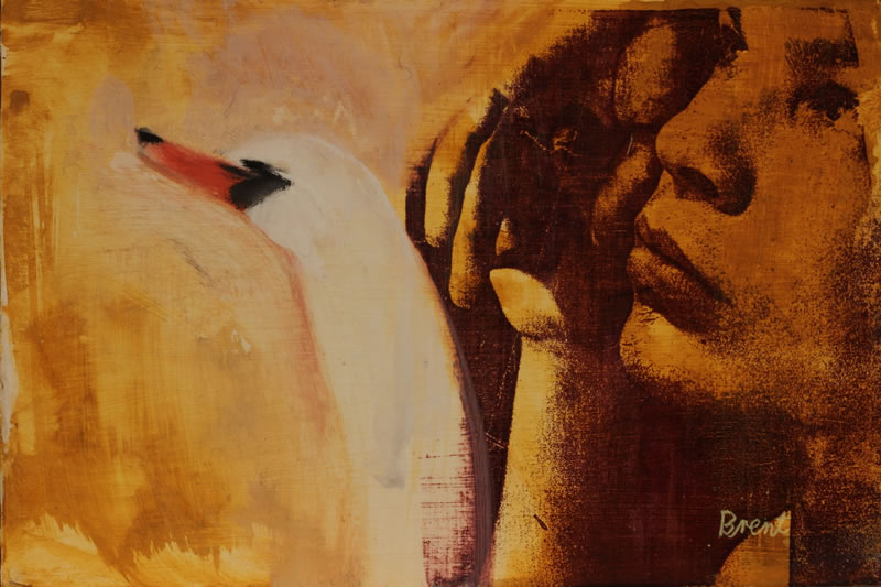 Leda and the Swan. Oil on board. 14cm x 22cm.