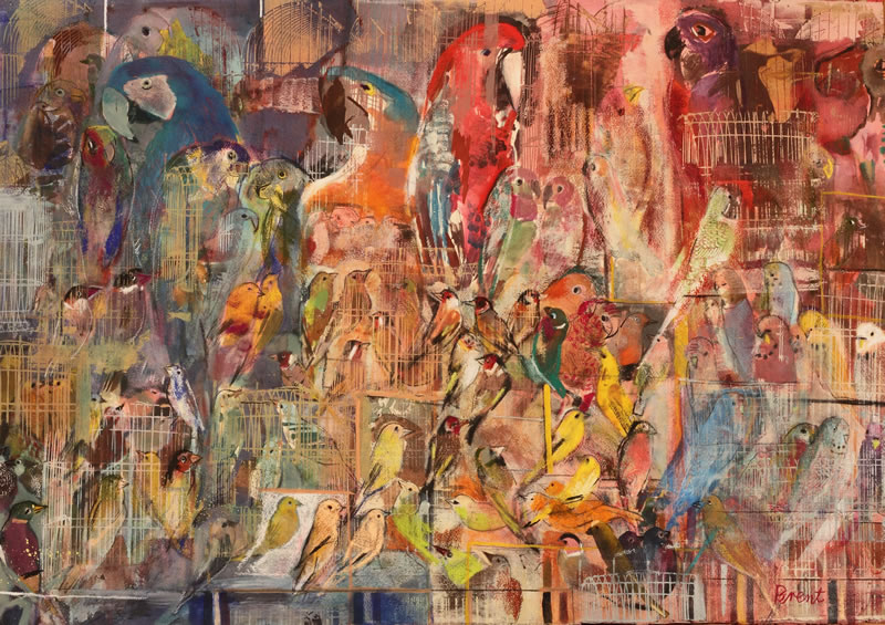 Paris Bird Market. Gouache on paper. 66cm x 94cm.