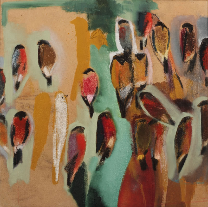 Bullfinches. Oil on canvas. 50cm x 50cm.